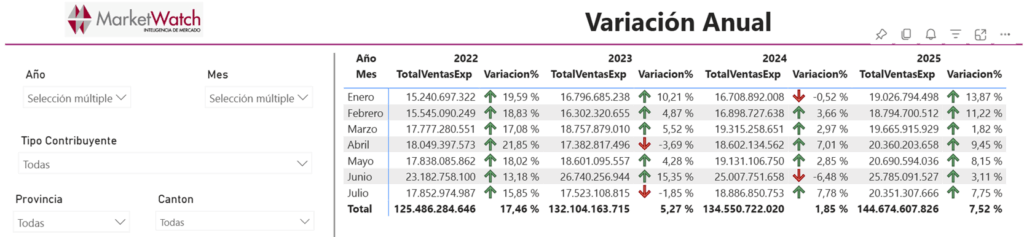 Además de la liquidez, las ventas totales y exportaciones (empresas y personas) también presentan rebote en periodo enero-julio 2025 (ultima data disponible) con crecimiento YTD 7.5% comparado con 1.9% en mismo periodo 2024.